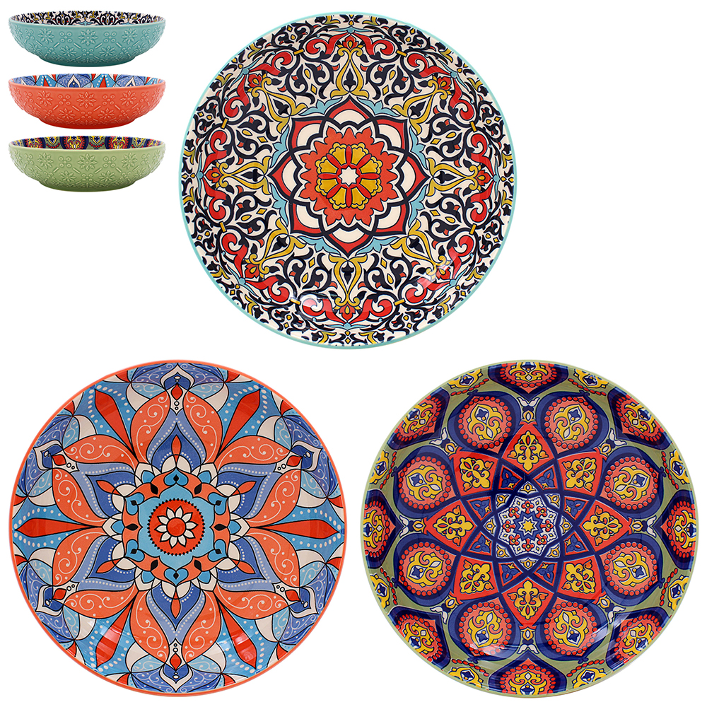 En ny snygg djup tallrik (diameter 22 cm), tillverkad i fint porslin med ett mönster inspirerat av Toscana i olika färgställningar. Tål både maskindisk och mikrovågsugn.