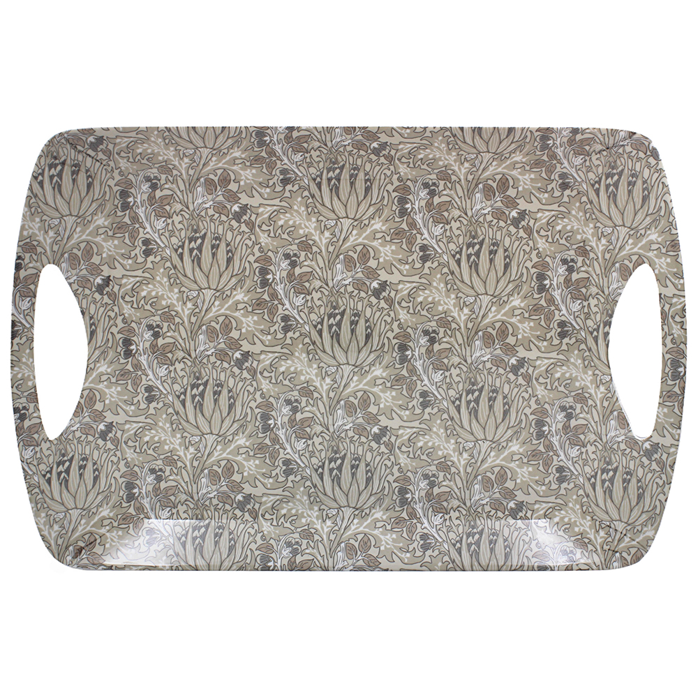 Stor bricka med handtag med William Morris härliga mönster Artichoke. Tillverkad i melamin.