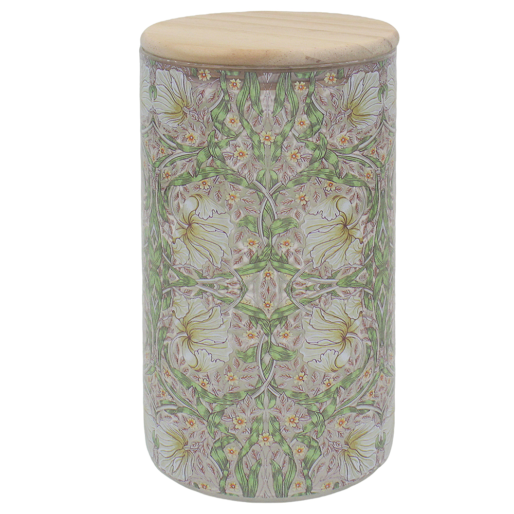 Tillverkad i glas med trälock och dekorerad med William Morris populära mönster Pimpernel.