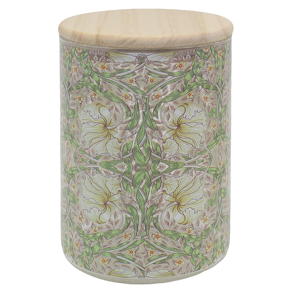 Tillverkad i glas med trälock och dekorerad med William Morris populära mönster Pimpernel.